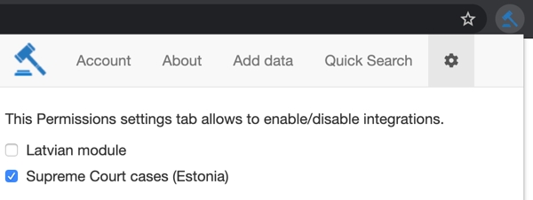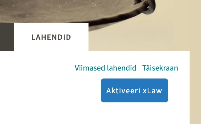 b) Veebilehitseja paremal nurgas vajutada sinist kohtunikuhaamri ikooni (kui seda ei ole, siis esmalt pusle märk ja pinnida xLaw)-> viimane sakk (tab) -> ja teha linnuke valiku "Supreme Court cases (Estonia)" ette.